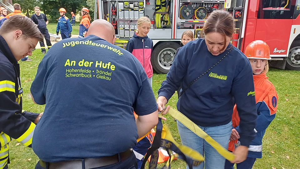 Mit Spaß und Engagement zeigten die Jungs und Mädchen der Jugendfeuerwehr den interessierten Zuschauern all das, was sie bis jetzt gelernt haben und standen auch denjenigen Rede und Antwort, die sich für den Dienst in der Jugendfeuerwehr interessieren.